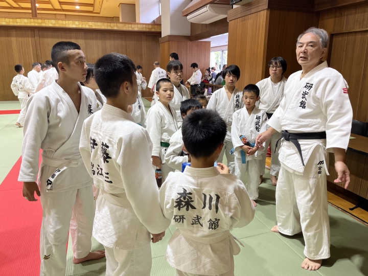 研武館も入門者が増えてきました。研武館は畳が一試合場分しかないので初心者は板の間にマットを敷いて宮田館長により礼法や足捌き、受け身など柔道の基本をしっかり教わっています。